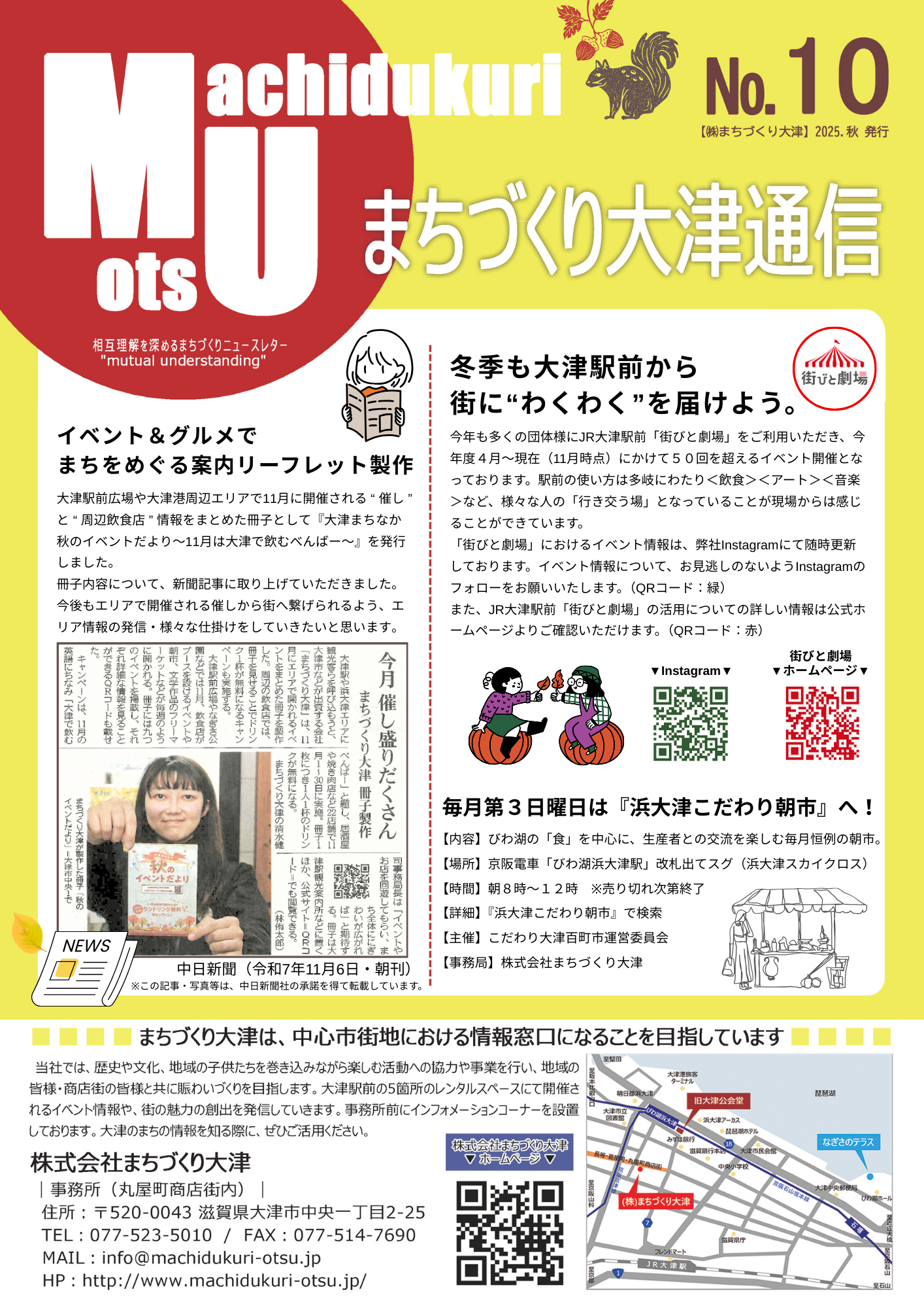 「まちづくり大津通信」のNo.10秋号が完成いたしました。