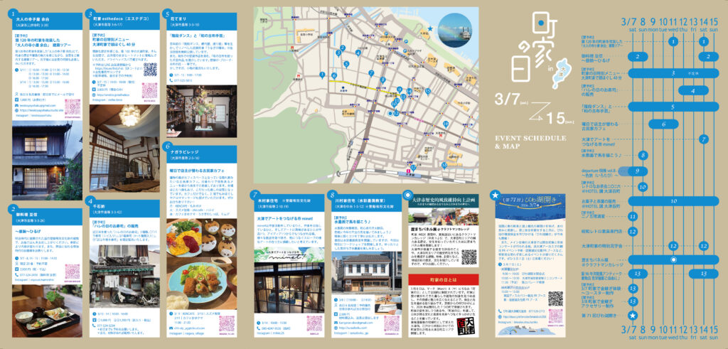 ◇内容:大津百町エリアで、18の参加町家が企画した物販、体験または見学など、25の企画を楽しむことができます。